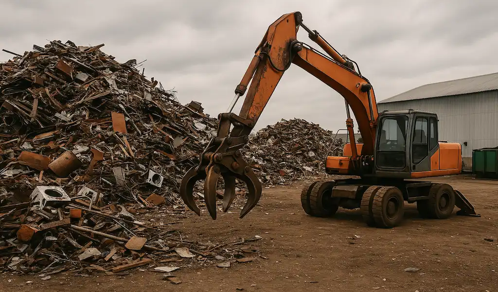 Завантаження металобрухту маніпулятором.